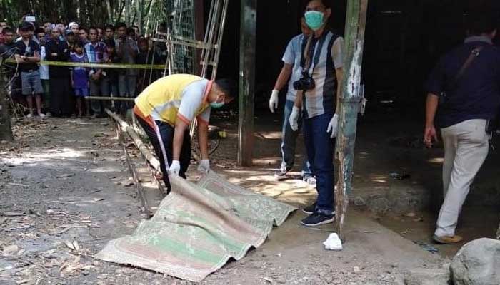 Korban ditemukan oleh seorang warga di rumah kosong di di Desa Cerih, Kecamatan Jatinegara, Kabupaten Tegal, Jawa Tengah, Selasa (13/8/2019).