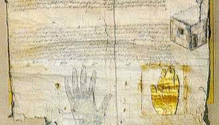 Surat ini disegel dengan imprint mewakili tangan Nabi Muhammad.