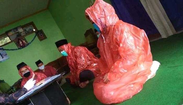 PROSESI akad nikah yang tetap berlangsung di tengah ancaman corona viral di media sosial. Pasalnya, kedua mempelai tidak menggunakan baju adat, melainkan memakai jas hujan. Prosesi akad tersebut viral setelah diunggah oleh akun Twitter bernama @NoviaFM pada Kamis (26/3/2020).