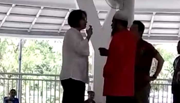 Mengetahui ada orang yang masuk masjid membawa anjing, jemaah masjid kemudian bertindak. Jemaah mengusir SM keluar dari masjid.