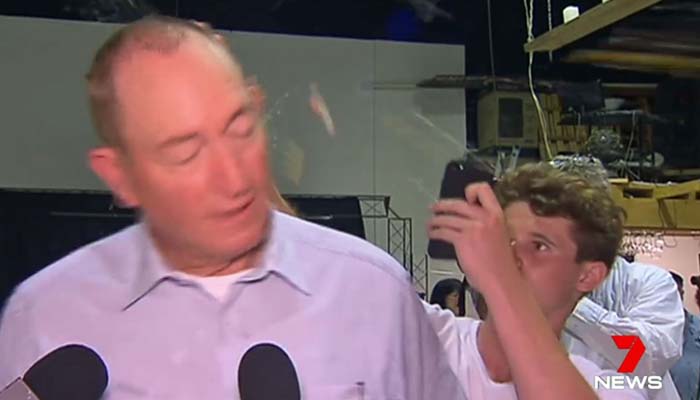 SENATOR Queensland Australia Fraser Anning dikepruk dengan menggunakan telur di bagian belakang kepalanya oleh seorang remaja berusia 17 tahun, Will Connolly.