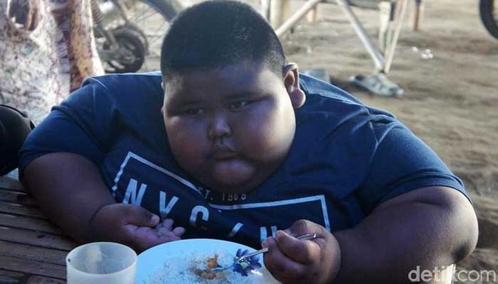 JAKARTA–Satia Putra, bocah berusia 7 tahun ini mengalami obesitas dengan berat badan mencapai 97 kilogram. Dari pengakuan sang ayah, Sarli, nafsu makan Satia meningkat drastis usai disunat 4 tahun lalu. Berat badan Satia naik perlahan hingga pernah mencapai 100 kilogram.