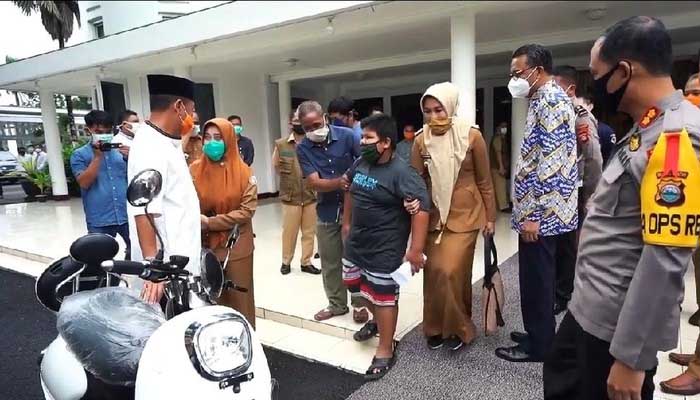 Tidak hanya beasiswa, Nurdin Abdullah juga memberikan satu unit motor listrik untuk digunakan RZ dan keluarganya.