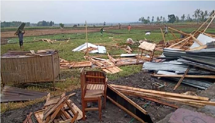 Rumah Andis dan istrinya yang baru dibangun sekitar setahun itu kini rata dengan tanah. Bangunan rumah semipermanen ini porak-poranda dan bergeser sejauh 3 meter dari pondasinya. Rumah panggung berbahan balok kayu itu kini hancur diterjang puting beliung di Desa Labokong, Donri-donri.