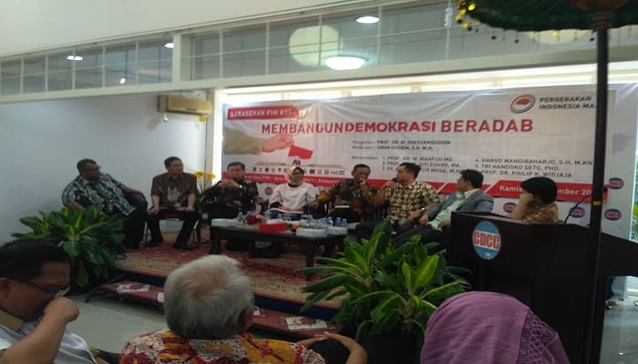 “Dasar negara, Pancasila harus dijadikan landasan utama dalam berpolitik,” ujarnya dalam acara Sarasehan Kebangsaan dengan topik “Membangun Demokrasi Beradab” di kantor The Centre for Dialogue and Cooperation among Civilizations (CDCC) Kebayoran Baru, Jakarta Selatan, Kamis (6/9/2018).