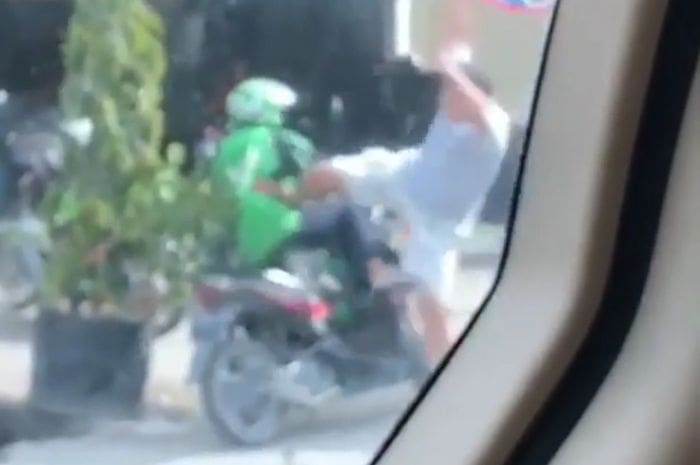 Tak lama, pria yang diketahui pengendara mobil itu turun dan menendang sang driver ojol hingga terjungkal. Kejadian yang terekam video tersebut langsung viral di media sosial.