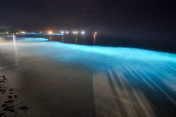 LAMPUNG–Masyarakat Kabupaten Pesisir Barat Lampung digegerkan oleh fenomena alam air laut yang menyala. Terlihat ombak di sepanjang jalur pantai Pesisir Barat membiaskan sinar warna biru neon yang menyala pada malam hari.