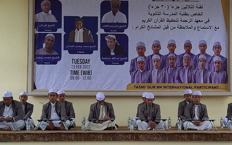 Di hadapan dewan asatidz dan santri lainnya, para Santri Ar-Rohmah Tahfidz Malang penghafal Al-Qur’an itu diuji oleh 5 syeikh yang berasal dari luar negeri. Yaitu Syeikh Ramadhan Al Umrani dari Libya, Syeikh Ramadhan dari Mesir, Syeikh Abdullah Basalamah dari Yaman, Syaikh Yasir Abdul Qodir dari Sudan dan Syeikh Farhan dari Yaman.