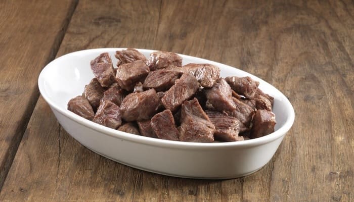 - Potong daging menjadi kubus kecil