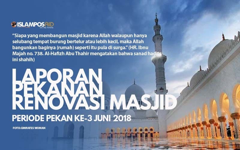 ALHAMDULILLAH–Donasi IslamposAid renovasi masjid masih terus berjalan. Dan ini adalah donasi minggu ke-3 di Bulan Juni.