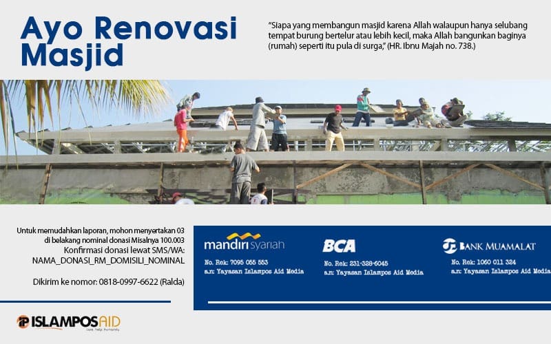No.Rek: 7095 055 553 a.n: Yayasan Islampos Aid Media