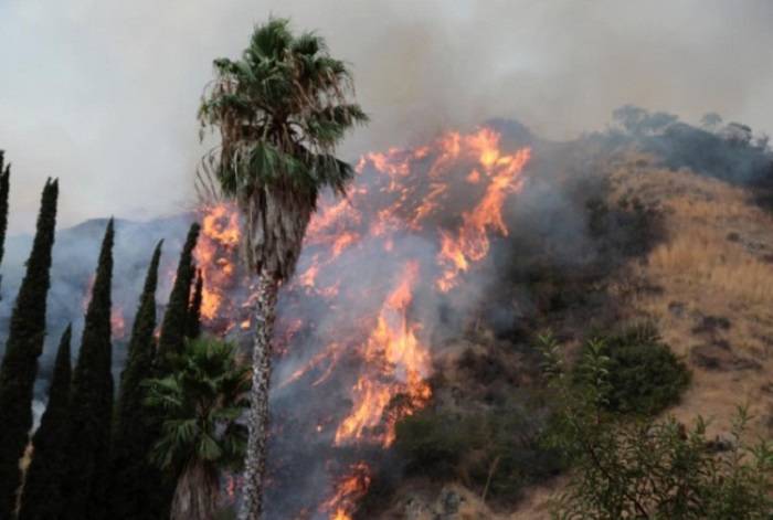 Kebakaran besar yang baru terjadi dalam beberapa dasawarsa ini perlahan-lahan merayap menuruni lereng bukit yang lebat. Api mulai menuju rumah-rumah warga, dengan suhu di daerah mendekati suhu 38 derajat Celsius, Departemen Pemadam Kebakaran Los Angeles mengumumkan dalam sebuah peringatan. []