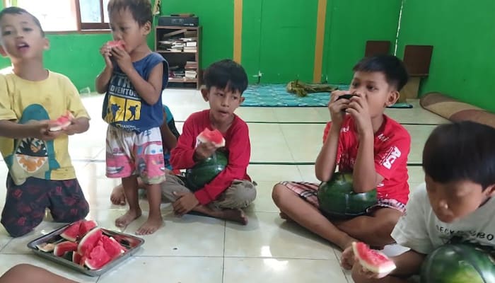 Adapun orang tua penerima manfaat rata-rata berprofresi sebagai buruh angkut sampah, pengepul kardus dan barang rongsokan, pedagang, buruh serabutan, pe ngemudi ojek daring, hingga petugas kebersihan. Para orang tua adik-adik juga ikut mendampingi saat agenda berbagi semangka.