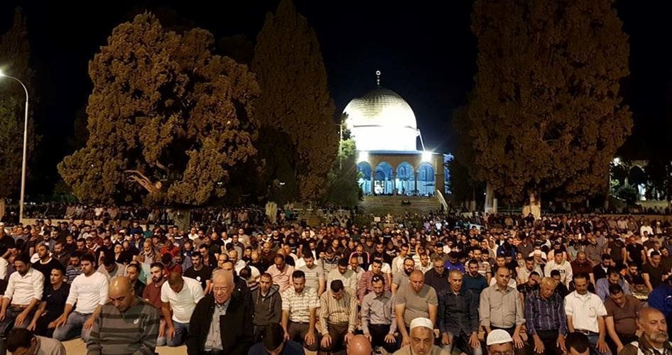 PALESTINA—Badan Wakaf Islam di al-Quds menyebutkan bahwa sekitar 60 ribu jemaah telah menunaikan shalat tarawih di Masjid al-Aqsha, Kamis (17/5/2018).