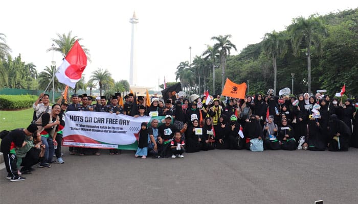 JAKARTA (24/11/2024), Ratusan peserta dari 18 kota/kabupaten hadir memeriahkan puncak Milad 1 dekade Komunitas Hafizh On The Street di plataran Tugu Monumen Nasional (Monas) Jakarta. Di antaranya: Jakarta, Depok, Bogor, Kota/Kab Bekasi, Kota/Kab Tangerang, Tangerang Selatan, Bandung, Kota/Kab Serang, Lebak, Karawang, Cianjur, Cirebon, Ciamis, Banjar Patroman, Garut, Karanganyar, Surabaya dan Bandar Lampung. Serta santri-santri dari Ma’had Kauny Qur’an Al Madani Jakarta dan Ma’had Kauny Qur’an Cinere Depok.