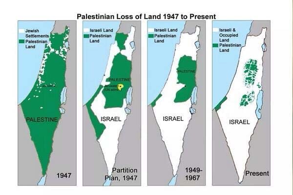 Ketika kemudian 14 Mei 1948, orang-orang Ziones Israel mendeklarasikan berdirinya negara Yahudi itu, Israel, AS menyatakan pengakuannya terhadap Israel. Negara-negara Arab menolak deklarasi tersebut dan esoknya membentuk pasukan sekutu Arab, yang terdiri dari Suriah, Mesir, Jordan, Lebanon, dan Irak. Pecahlah perang pertama Arab-Israel. Perang ini justru memperluas wilayah Israel, termasuk wilayah Yerussalem Barat. Mesir menguasai Jalur Gaza, Jordan menguasai Tepi Barat dan Yerusalem Timur. Ribuan warga Palestina jadi pengungsi. Mereka menjadi pengungsi di tanah mereka sendiri.