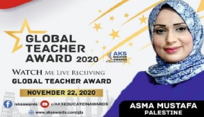 PALESTINA–Asma Mustafa, guru asal Palestina, memenangkan penghargaan Global Teacher Award 2020. Mustafa adalah guru bahasa Inggris di SMP khusus perempuan Halima Al Saadia di wilayah utara, Jalur Gaza, Palestina.