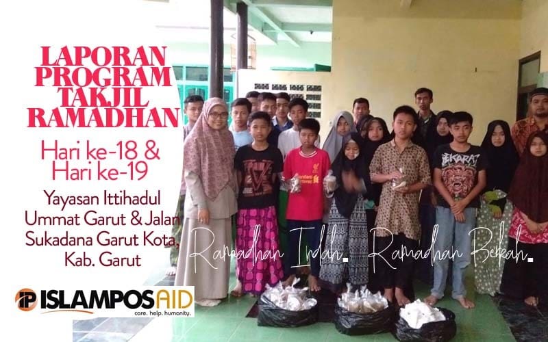 ALHAMDULILLAH, takjil ke-18 dan ke-19 IslamposAid di bulan Ramadhan 1439 H dilaksanakan di Yayasan Ittihadul Ummat Garut dan Jalan Sukadana Garut Kota pada Rabu (06/06/2018).