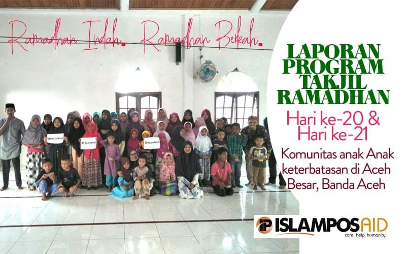 ALHAMDULILLAH, takjil ke-20 dan ke-21 IslamposAid di bulan Ramadhan 1439 H dilaksanakan di Komunitas Anak-anak Keterbatasan di Aceh Besar, Banda Aceh pada Jum’at (08/06/2018).