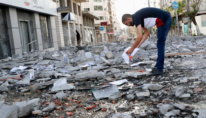 أحد رجال الدفاع المدني في غزة يعيد مالاً وجده لصاحب البيت المهدم ويعُدّه أمامه ..
