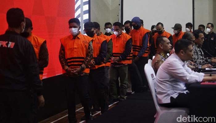 “Kemudian terhadap yang telah ditetapkan tersangka dan ditahan akan dilakukan pemberhentian sementara sesuai aturan yang berlaku,” kata Sekretaris Jenderal (Sekjen) KPK Cahya H Harefa dalam konferensi pers di gedung Merah Putih KPK, Jakarta Selatan, Jumat (15/3).