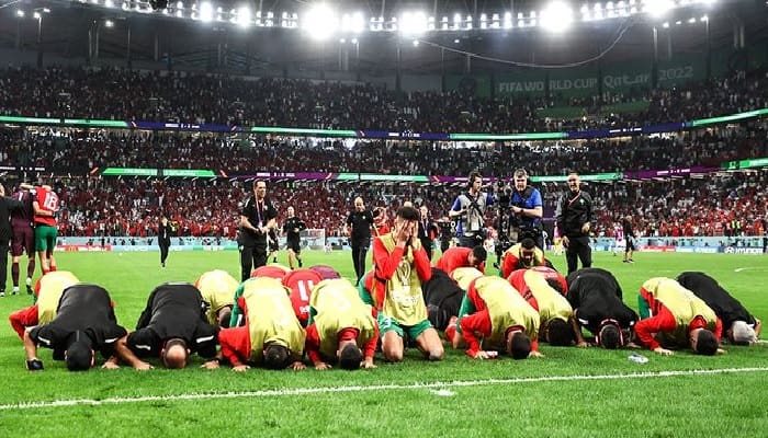 SAHABAT Islampos, timnas Maroko menjadi satu-satunya negara muslim-Afrika yang berhasil melaju ke babak perempat final Piala Dunia 2022. Selebrasi mereka kala mengalahkan timnas Spanyol di babak enam belas besar, menyita perhatian dunia. Sujud syukur timnas Maroko tersebut disebut-sebut sebagai selebrasi tercantik di Piala Dunia 2022 oleh warganet.