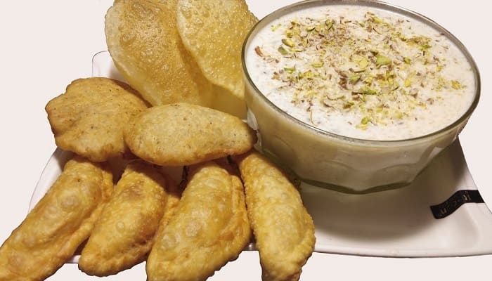 Puri adalah makanan ringan yang diisi dengan dal manis yang dimasak, Choba (kelapa kering), gula dan buah-buahan kering atau khowa dan kemudian digoreng sampai berwarna emas muda dan renyah. Puris juga dinikmati dengan semangkuk kheer hangat (puding nasi).