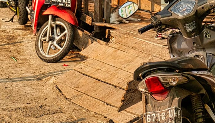Tiba-tiba saya lihat seorang pria sedang menuntun motor, sepertinya saya kenal…ciiiii motor rem mendadak.